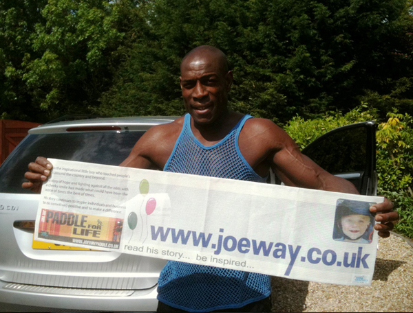 Where was the banner last...Boxing legend Frank Bruno was happy to pose with the banner after hearing all about Joe's story.